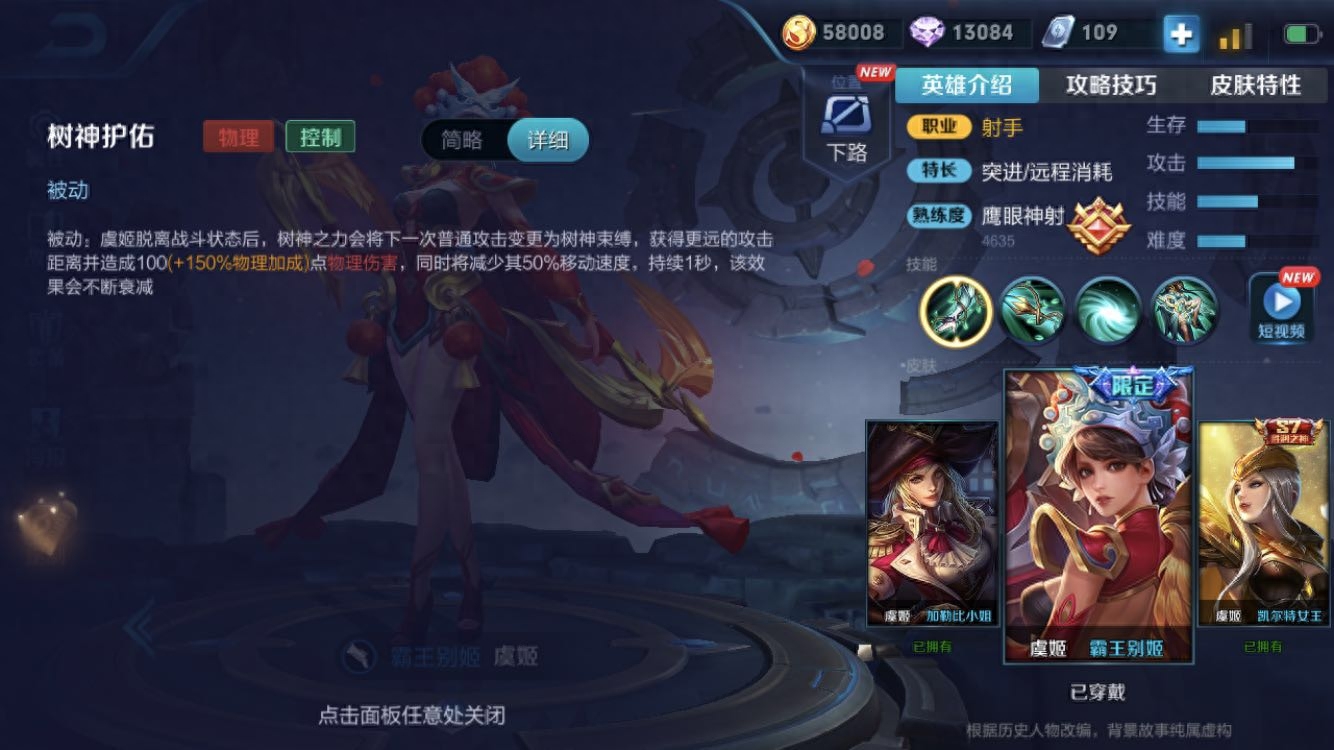 现在的虞姬已经基本定型成了攻速暴击流,自从使用大招大幅增加攻击速度后,虞姬也已经成了一个中后期伤害很足的射手。