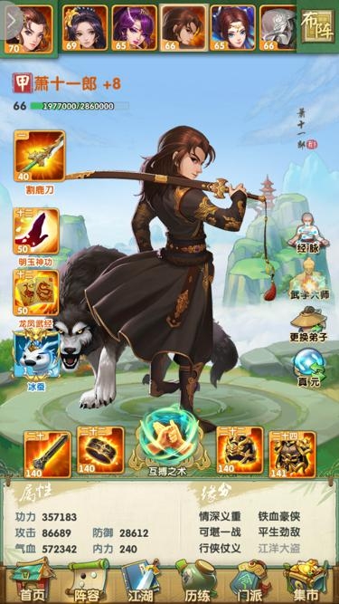 在心法配置方面,优先根据自己阵容战斗方式来进行范围归纳,进而再根据侠客特性配置不同的心法。例如控制消耗流的萧十一郎阵容,整个队伍基本上只靠萧十一郎来输出,其他都是防御、控制或者庇护队友的。这个阵容就可以选1种攻击心法,其他的就是防御、控制为主。